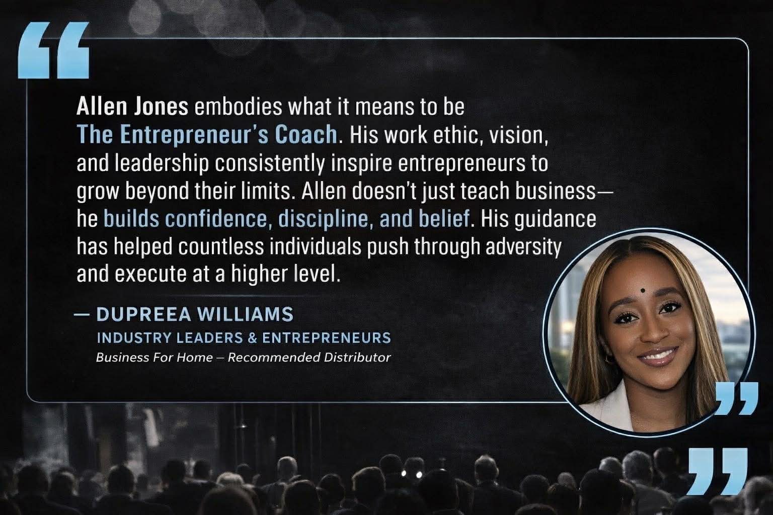 Allen Jones is a motivational coach, entrepreneur, and financial mentor who rose from growing up in poverty and experiencing homelessness in Oklahoma City to building multiple seven-figure businesses. Raised in a single-parent household, Allen transformed adversity into fuel, going on to own franchises, launch and scale multiple ventures, and coach teams of over 100,000 people worldwide. Known as The Entrepreneur’s Coach, he teaches individuals how to become debt-free, financially stable, and income-diversified, while building confidence and belief along the way. His journey and impact have been featured on major platforms like The Anderson Cooper Show. Currently residing in Dallas, Texas, Allen is also a devoted father with a passion for helping everyday people earn extra income and realize that their past does not determine their future.
